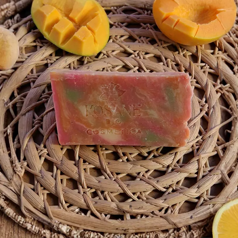 Llena tu piel de vitalidad con este jabón artesanal de mango. Su aroma tropical aporta alegría mientras hidrata, suaviza y devuelve luminosidad a la piel.